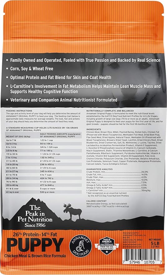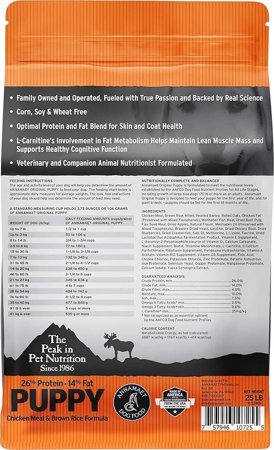 Annamaet Original Puppy Dry Dog Food, (Chicken & Brown Rice), 25-lb Bag
