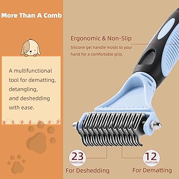 - Tangle-Free Grooming with De-Matting Comb: The de-matting comb is perfect for tackling stubborn tangles and preventing mats, ensuring your pet enjoys a comfortable grooming experience. Suitable for both dog brushes for shedding and cat brushes for indoor cats, this tool minimizes pulling and discomfort while leaving your pet’s coat smooth and knot-free.