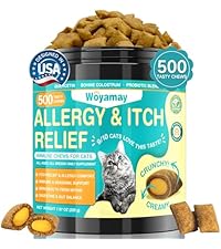 - DIGESTIVE & SKIN SUPPORT: Formulated with pumpkin powder, brewer’s yeast, and cranberry, these cat skin allergy relief chews help maintain healthy digestion, nutrient absorption, and balanced gut flora. Added deep-sea fish oil and spirulina provide omega fatty acids and antioxidants that nourish the skin, reduce dryness and shedding, and promote a soft, shiny coat—supporting comfort and overall vitality from the inside out.