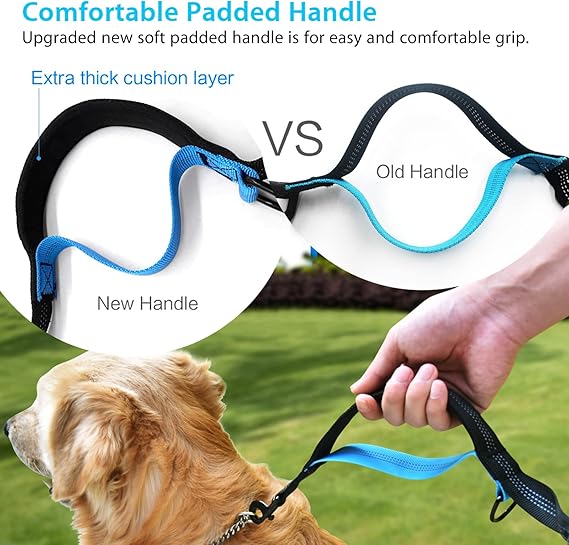 - SHOCK ABSORBING DUAL BUNGEE LEASH: Dual bungees heavy duty design can absorb shock and pull force from dogs up to 150lb. It will reduce stress and muscle strain on you and dog. Reduce the risk of getting hurt
