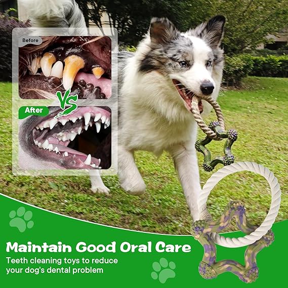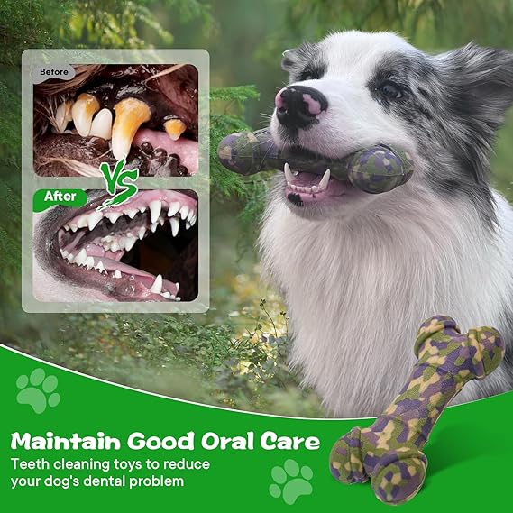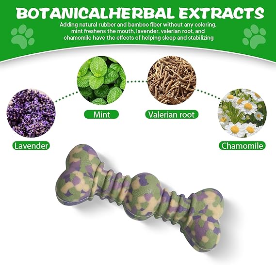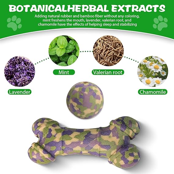 Dog Interactive Toys, Dog Bone Chew Toys, Tooth Cleaning Toys, Natural Rubber Dog Toys, Natural Herbal Infused Chew Toy for Dogs with Destructive Behavior, Anxiety, and Restlessness