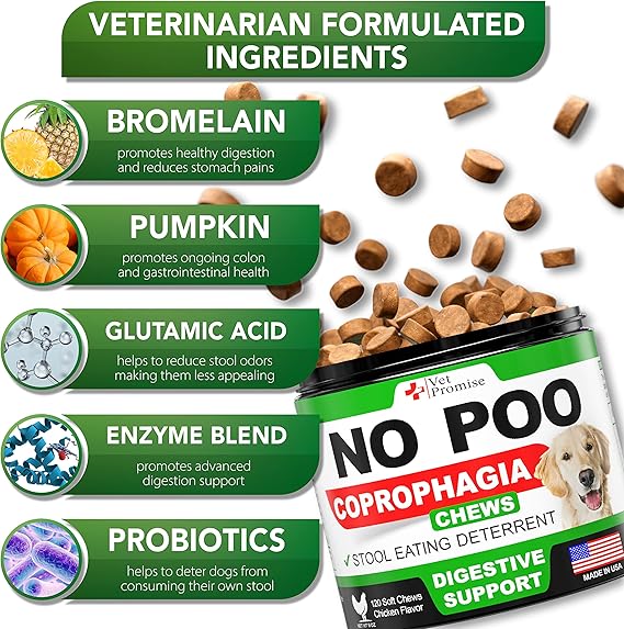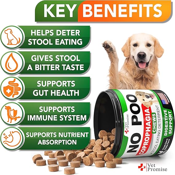 Vet Promise Super Poop Probiotics for Dogs - Dog Stool Softener - Fiber for Dogs Supplement - 6 Probiotics and Digestive Enzymes - Healthy Gut - Perfect for Firm Stool & Diarrhea Relief - 120 Chews