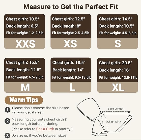 1. The sizes of our dog clothes are different from other pet brands. Please don't choose the size based on your usual size.