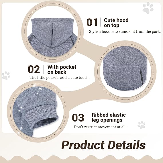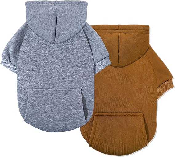 The package contains 2 pieces of dog sweaters. The style is adorable with the hood on top and the pocket on the back, just like a regular hoodie. Sufficient quantities and various color can meet your pet's wearing and replacement needs.