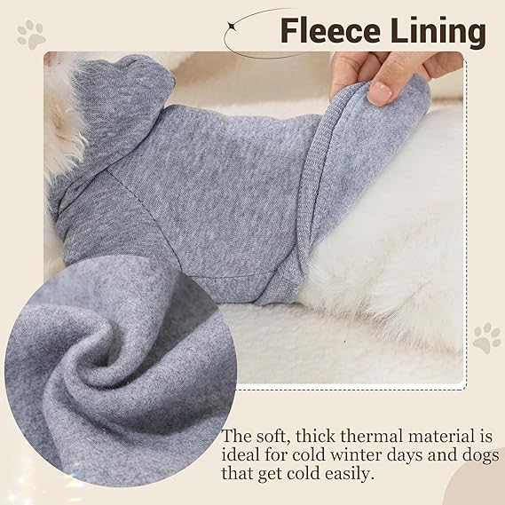 Thermal fabric keeps your furry friend warm and comfortable during the chilly winter months. This dog hoodie features fleece lining, ultra-soft for maximum comfort. The dog clothes makes it ideal for short-haired or cold-sensitive pups.