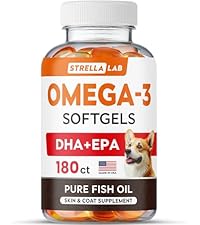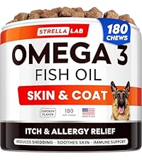StrellaLab Omega 3 for Dogs - (180Ct) Fish Oil Treats - Allergy & Itch Relief Skin & Coat Supplement - Dry Itchy Skin, Anti Shedding & Hot Spots Treatment - Pet Salmon Oil Chews - Chicken Flavor