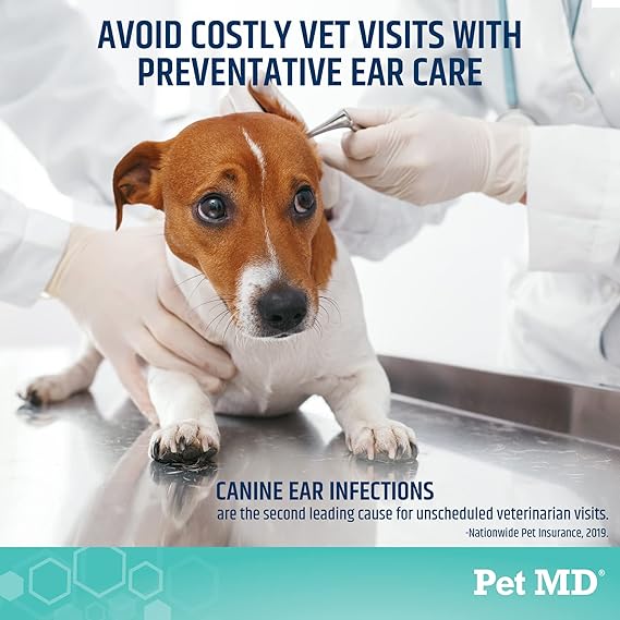 Pet MD Otic Clean Dog Ear Cleaner for Cats and Dogs - Effective Against Infections, Itching, and Controls Odor - 8 oz