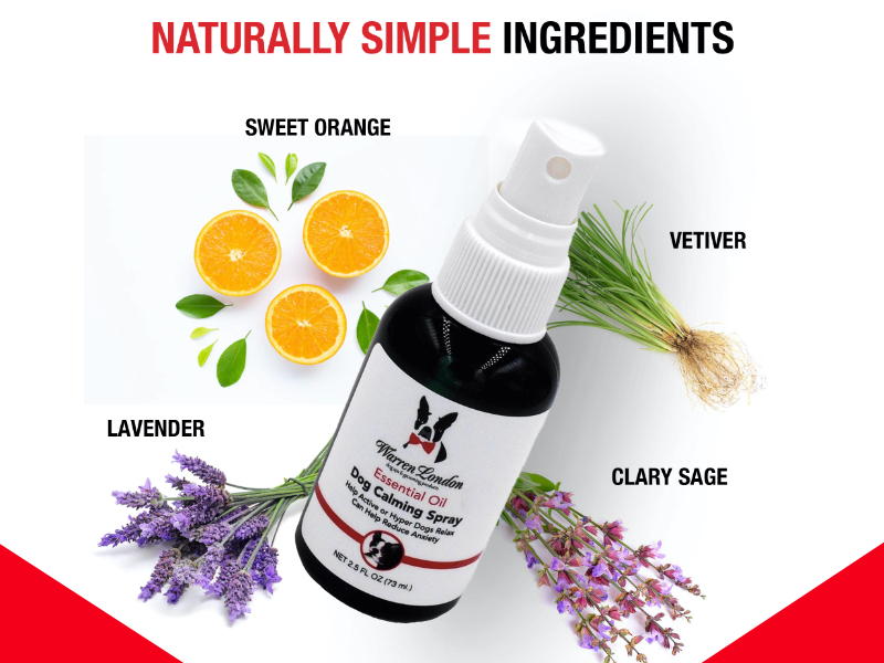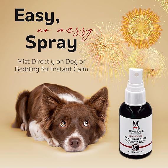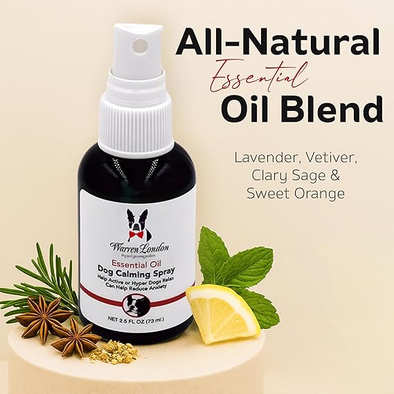 Warren London Calming Aromatherapy Spray for Dogs - 2.5 oz Essential-Oil Blend (Lavender, Vetiver, Clary Sage & Sweet Orange) | Fast-Acting Anxiety Relief for Fireworks, Storms, Grooming | Made in USA