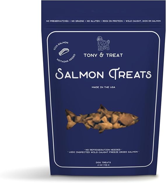 Freeze-Dried Salmon Dog Treats, Single-Ingredient, Wild-Caught Skin On Salmon, High-Protein, Grain & Gluten Free, Healthy Snack for Dogs, Made in USA, Great for Skin & Coat