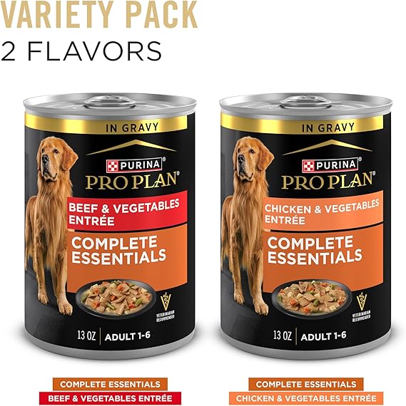 Purina Pro Plan Complete Essentials Wet Dog Food Chicken and Vegetables Entree and Beef and Vegetables Entree Variety Pack - (Pack of 12) 13 oz. Cans