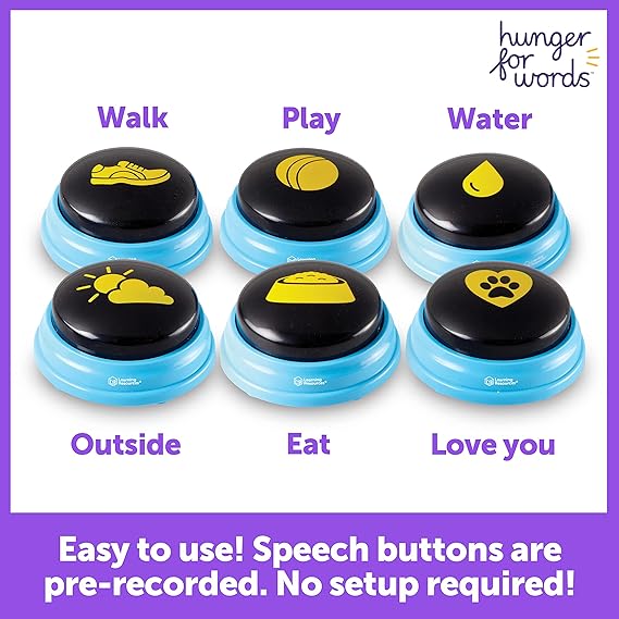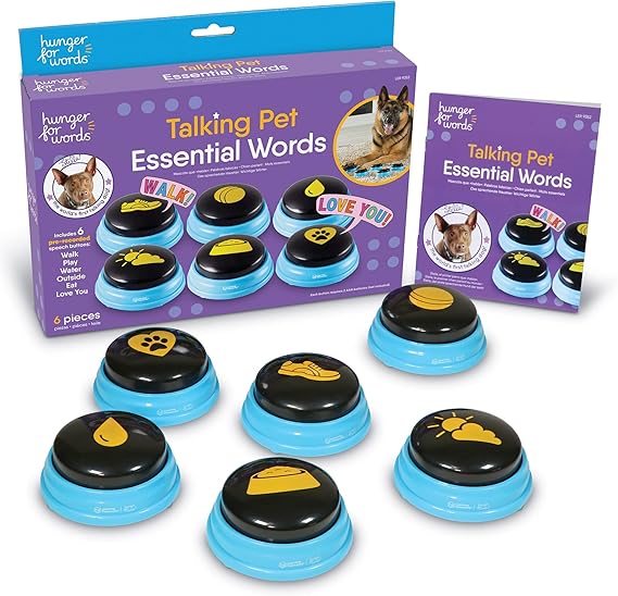 Hunger For Words Talking Pet Essential Words - 6 Piece Set Pre-Recorded Speech Buttons for Dogs, Dog Buttons for Communication