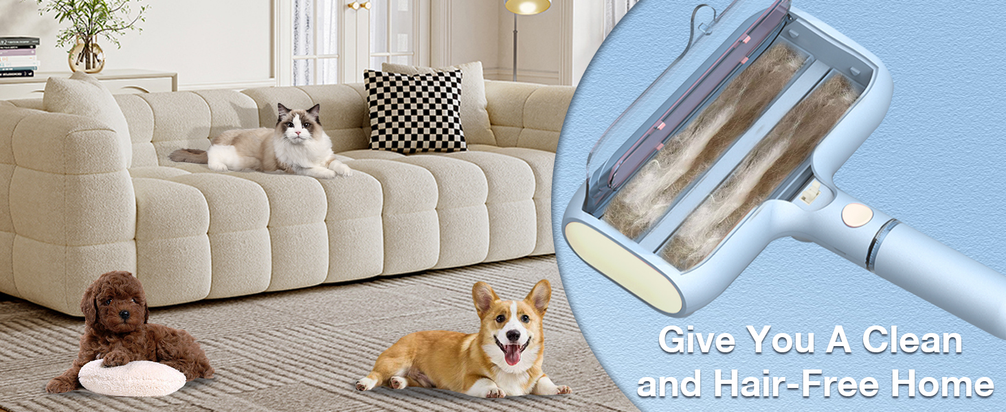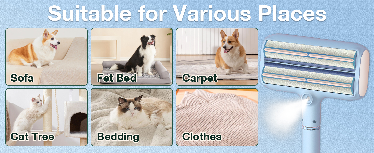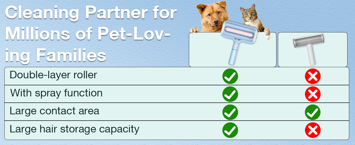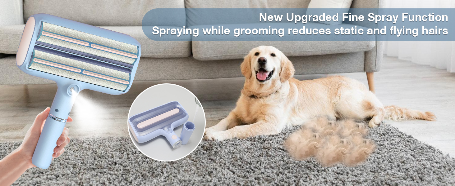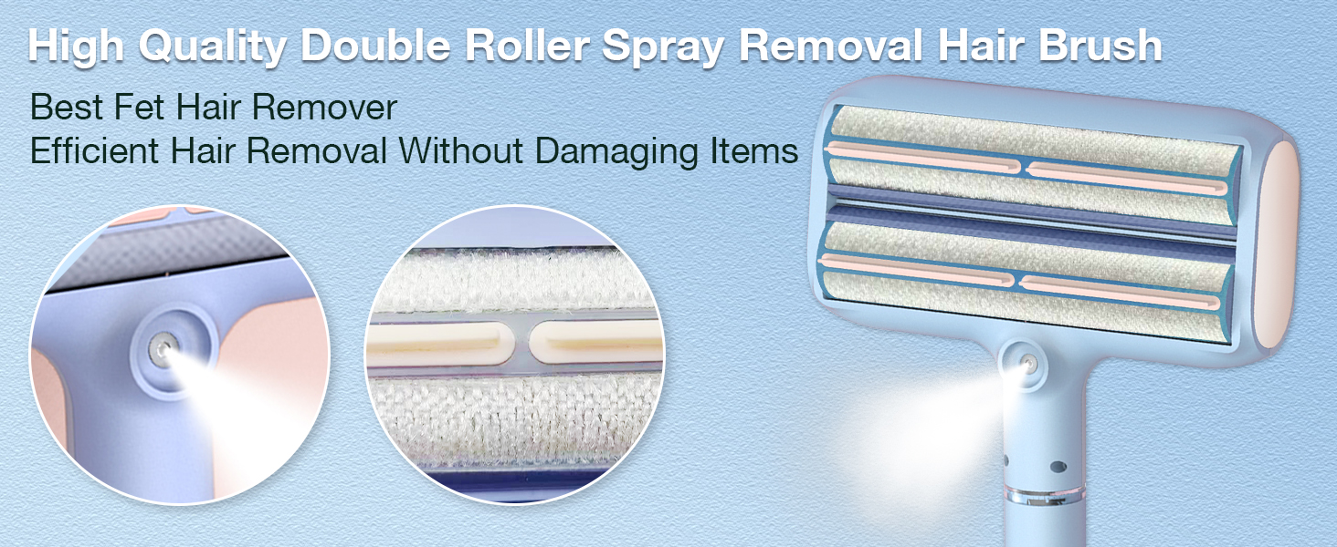 - 【Double Roller Pet Hair Remover with Spray Function】- 2025 new upgraded design, unique cat and dog hair remover, shake downward when using the spray function to fully make the water tank better contact the spray panel, effectively prevent hair splashing when the sticky hair roller is working, and better collect hair.