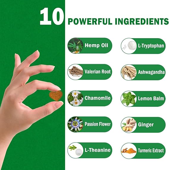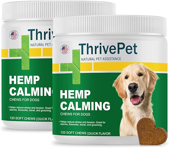 - Comprehensive Calming Formula: ThrivePet calming chews for dogs are meticulously crafted with 10 potent active ingredients including hеmp oil, valerian root, chamomile, passion flower, L-theanine, L-tryptophan, ashwagandha, lemon balm, ginger, and turmeric extract. This unique blend is designed to provide maximum calming effects, ensuring your dog receives a balanced and effective solution for stress and anxiety.