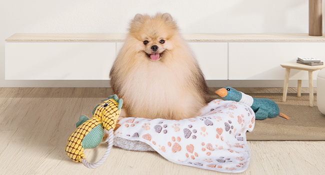 - Great Interactive Dog Toys Set. Ideally designed for Small Puppies Breed, with CPSC certification by U.S. Consumer Product Safety Commission, these Non toxic, durable, safe and engaging dog toys spark curiosity, encourage playful learning, keep them busy and create precious bonding moments that help you and your puppy grow closer every day. The paw-print blanket provides a cozy resting space for dogs. A perfect blend of utility and joy for daily routines.