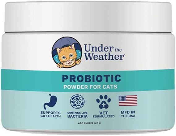 Under the Weather Pet Probiotics Powder for Cats | Vet Formulated Probiotic Supplement for Digestive Gut Health | Promotes Good Digestion & Immunity | Aids Occasional Diarrhea for Cats (2.54 Oz)