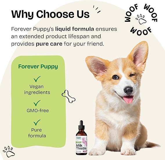 Forever Puppy Milk Thistle for Dogs - Liver Supplements for Dogs w/Milk Thistle Liquid Extract - Herbal Liver Support Drops for Large Medium Small Breed - Silymarin Vitamins and Supplements - 4 oz