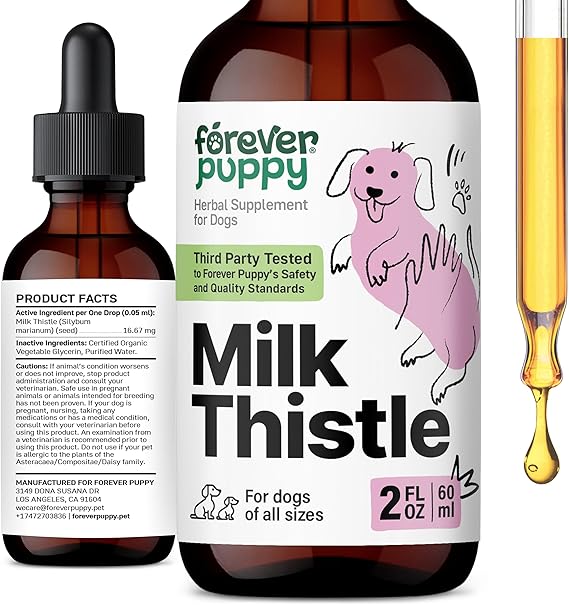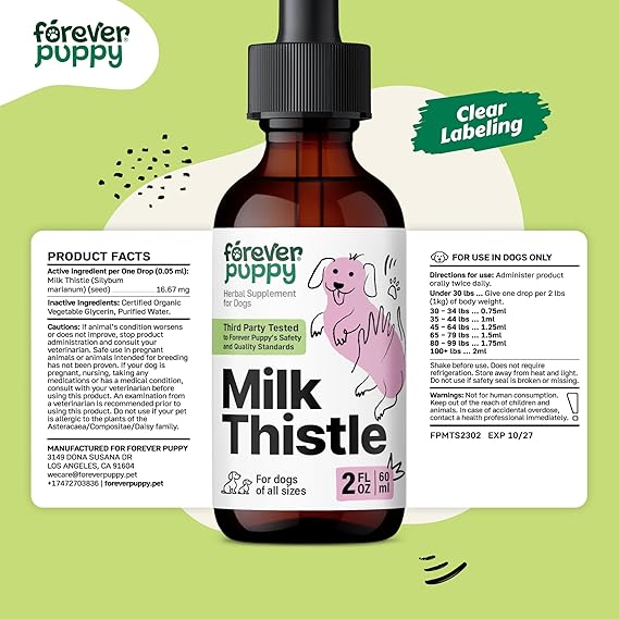 - Healthy Tails, Happy Days - Support your dog's liver with milk thistle drops. Forever Puppy's liver supplements for dogs promote a cleansing diet for your furry friend.