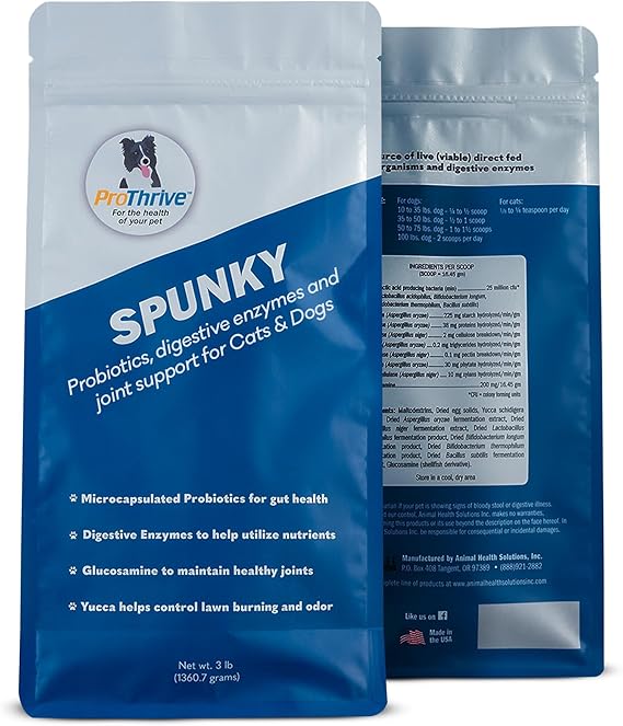 Spunky Digestive Supplement - Probiotics, Digestive Enzymes, Joint Support for Cats and Dogs | Gut Health | Pet Probiotics for Dogs and Cats - 3lb