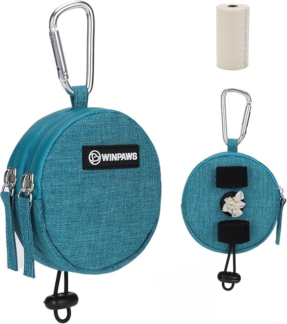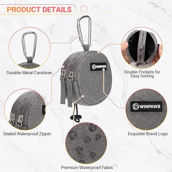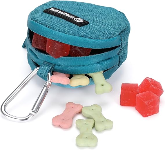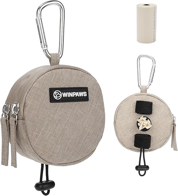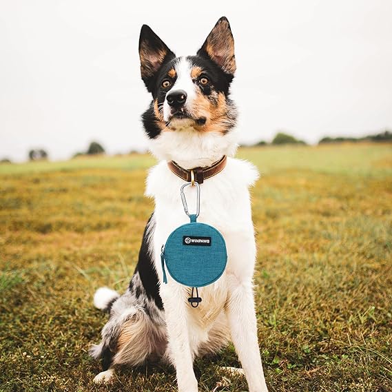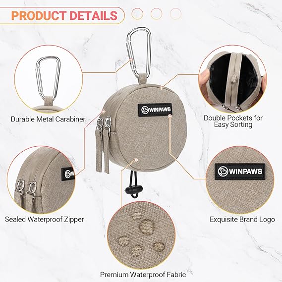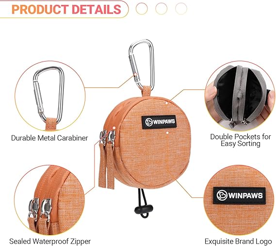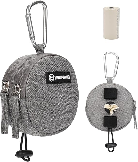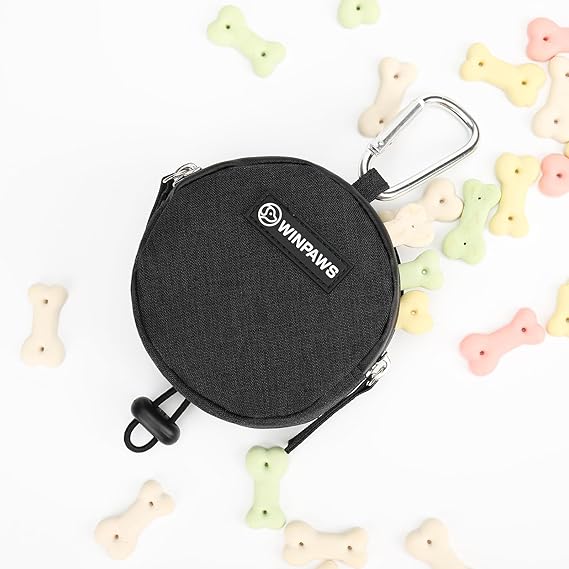 Winpaws Mini Double Round Dog Treat Bags with metal hook and loop closure, dog training rattle and dog waste roll make your dog training time more relaxing!