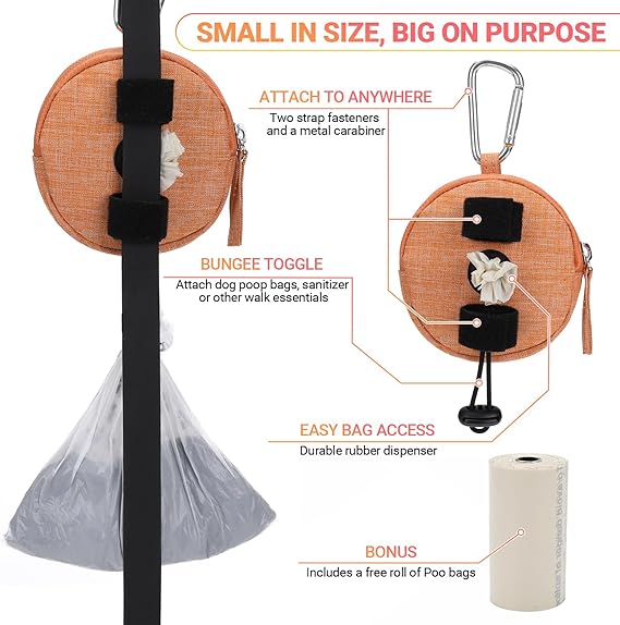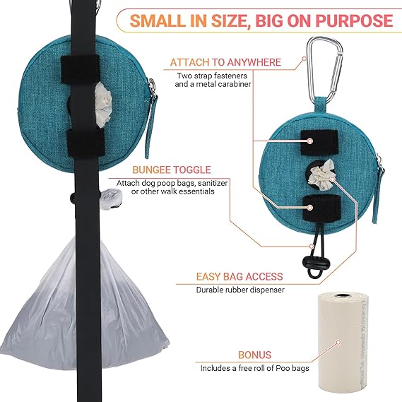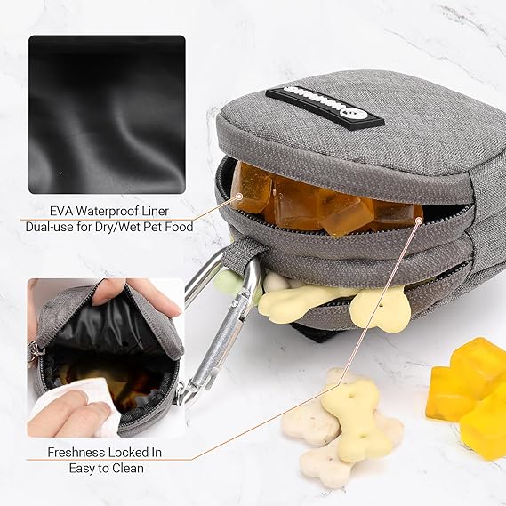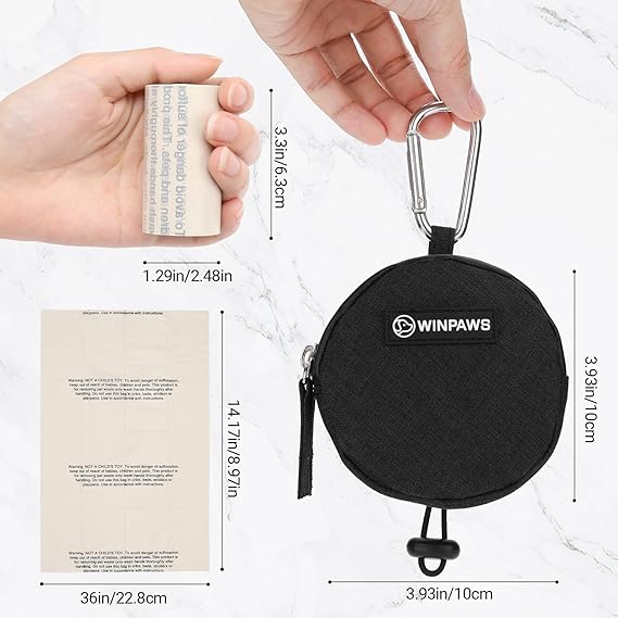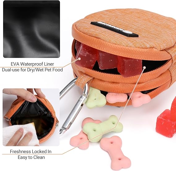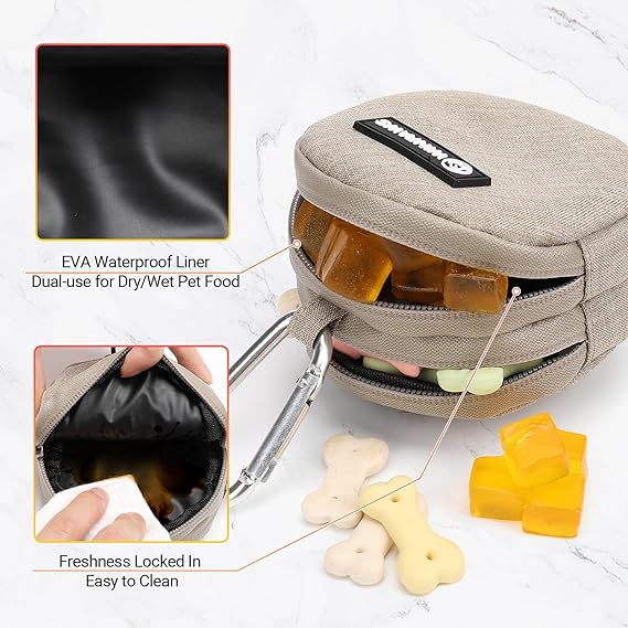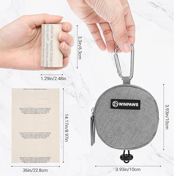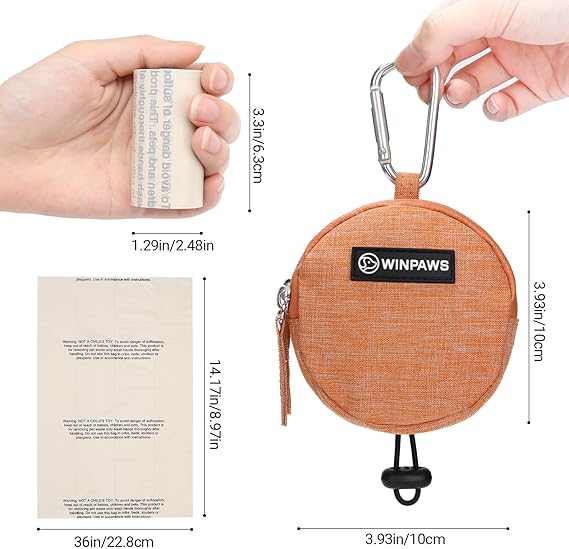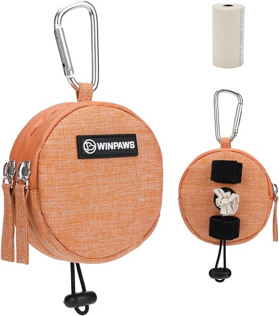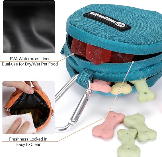 Winpaws Mini Double Round Dog Treat Bags with metal hook and loop closure, dog training rattle and dog waste roll make your dog training time more relaxing!
