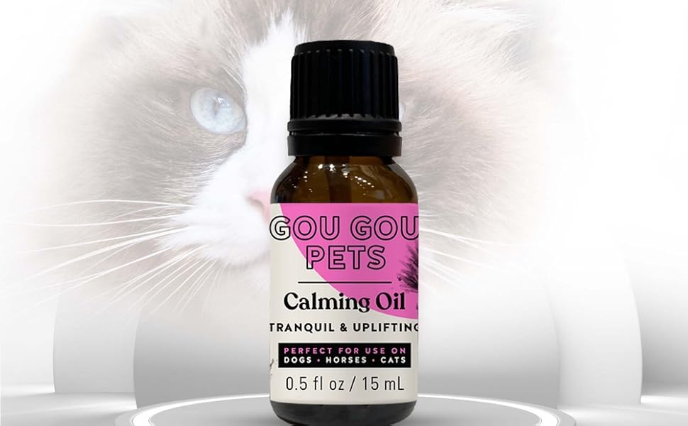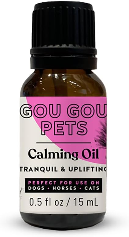 - SOOTHE YOUR PET’S STRESS AND ANXIETY: Gou Gou Pets has created the Calming Oil blended with natural oils and herbal ingredients to provide a calming solution for animals feeling anxious. Alleviating motion sickness, barking, separation anxiety, nervousness from thunderstorms, and easing PTSD.