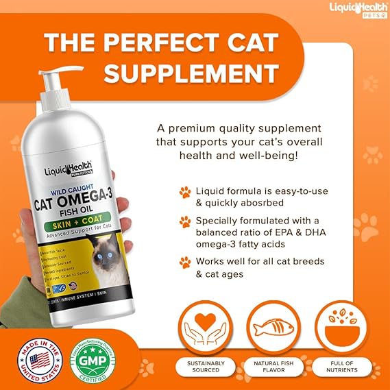 - USA MADE OMEGA 3 FISH OIL FOR CATS: Get ready to give your cat the ultimate wellness treatment with our premium cat fish oil. Our 8 oz bottle is packed with purr-fect nutrients that may support heart health, kidney function, healthy joint function, brain function, and immune system.