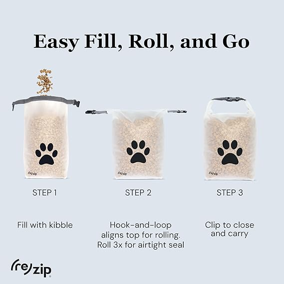 (re)zip Roll Top Pet Food Storage Bag (14-Cup) | BPA-Free, Food Grade, Pet Safe | Keeps Kibble Fresh for Camping, Dog Boarding, Weekend Getaways | Machine Washable