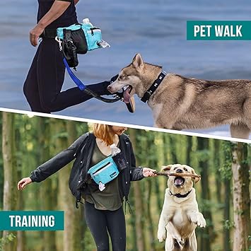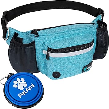 PetAmi Dog Fanny Pack, Treat Pouch for Dog Walking, Training, Built in Poop Bag Dispenser, Water Bottle Holder, Collapsible Bowl, Pet Treat Waist Belt for Hiking, Running, Kibbles (Turquoise)