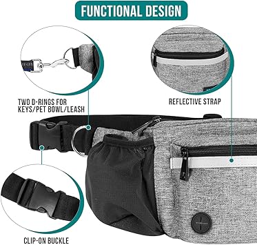 - SAFE AND TRUSTED: Reflective stitching on the front of the fanny pack increases visibility in low light, enhancing safety when walking your pet in the early morning and evening.