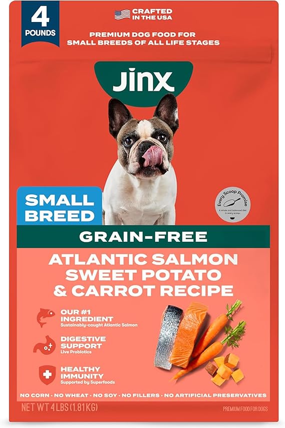 - A Whole, Balanced Diet in Every Scoop: Our Jinx Atlantic Salmon is a nutrient-dense dry dog food recipe crafted with real salmon, wholesome brown rice, and sweet potato, offering premium nutrition for puppy, adult and senior dogs of all breeds and sizes. 30 LB bag.
