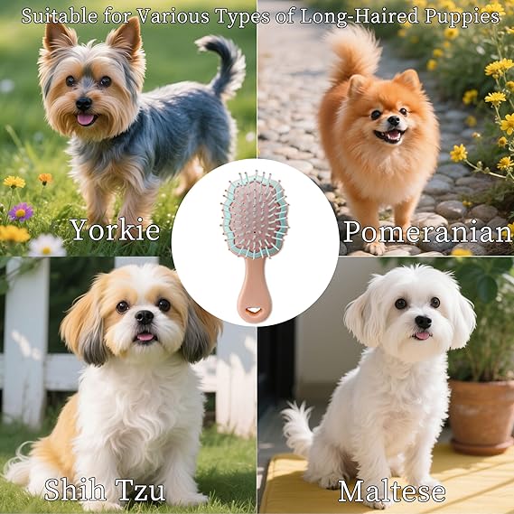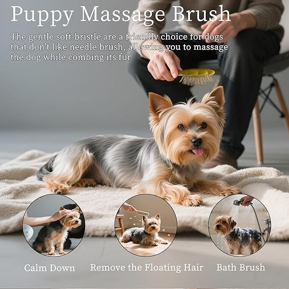- Ultra Soft Gentle Bristles Protect Delicate Skin: Featuring exceptionally soft and flexible tipped bristles specifically designed for sensitive puppy skin and small dog breeds like Yorkies Maltese Shih Tzus and Maltipoos ensuring a completely pain free and comfortable brushing experience that prevents irritation scratches or discomfort during every grooming session even for dogs with easily irritated skin or those new to brushing routines making it the ideal gentle brush choice for your furry companion