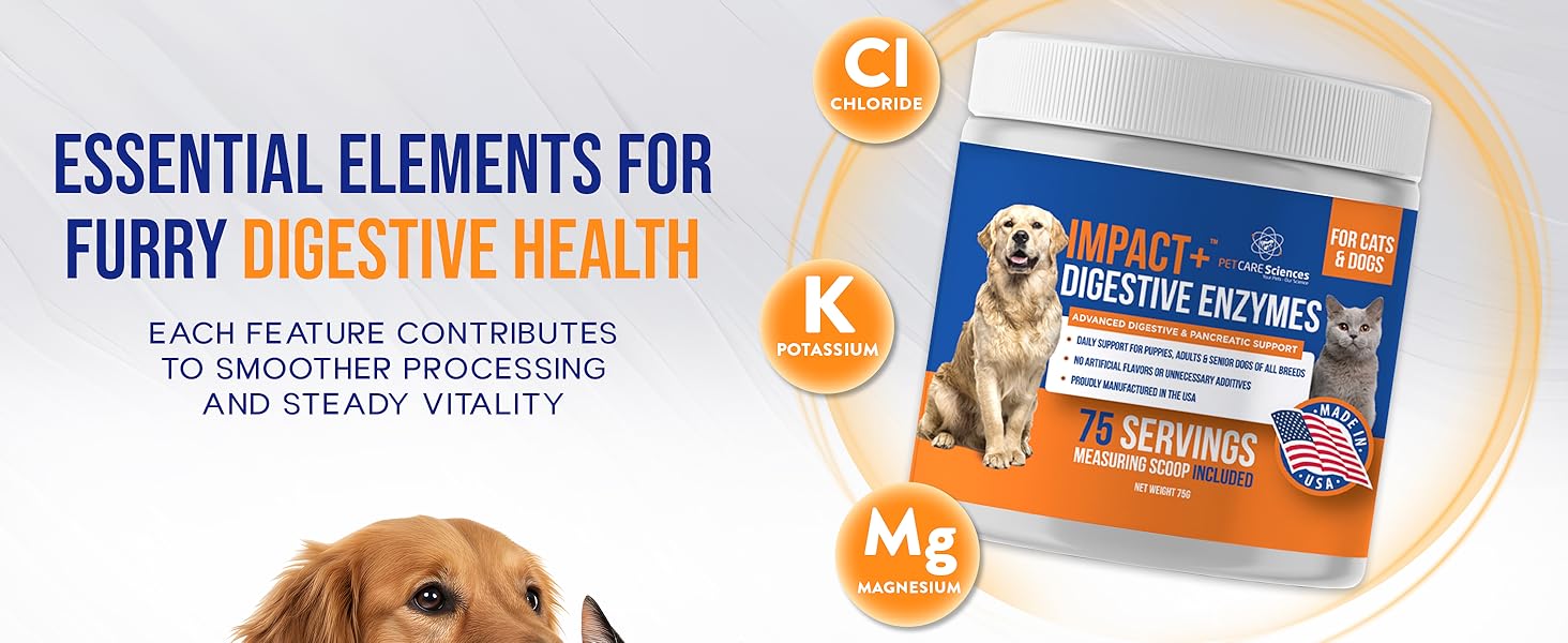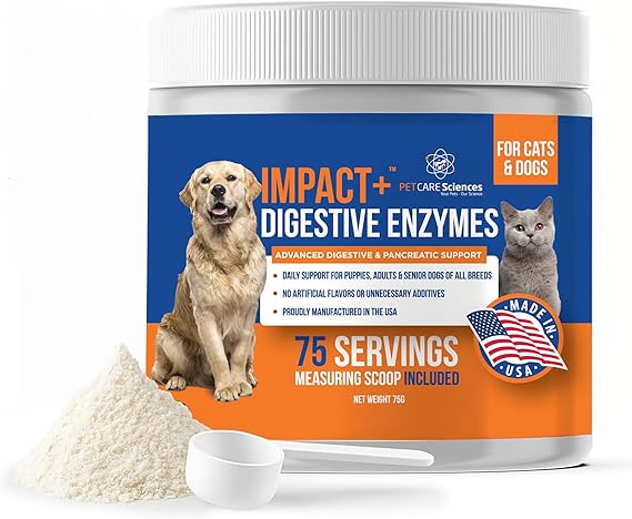 75 Servings Impact Digestive Enzymes for Dogs & Cats | Enzyme Powder for Digestion | Pancreatic Enzymes for Dogs & Cats | Digestive, Weight & Pancreatic Issues | Made in The USA