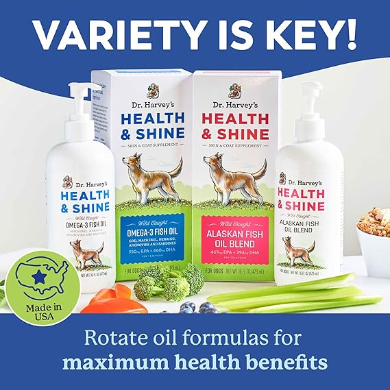 Dr. Harvey’s Health & Shine Omega 3 Fish Oil for Dogs from Wild Caught Cod, Mackerel, Herring, Anchovies and Sardines - Supports Beautiful Fur, Strong Joints and Itchy Allergy Relief (16 fl. oz.)