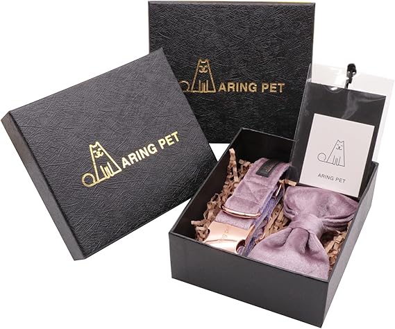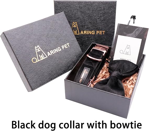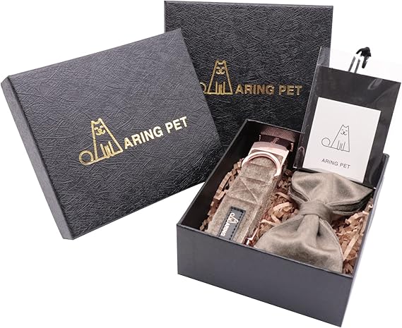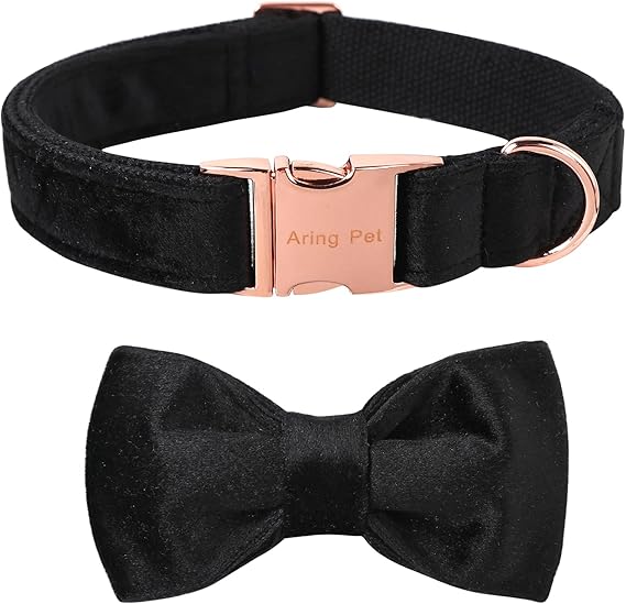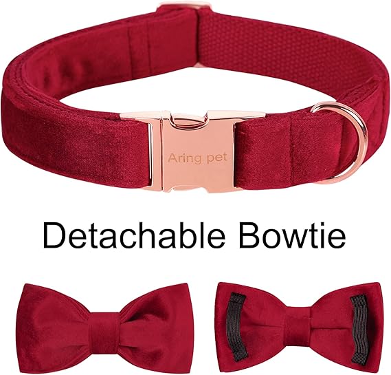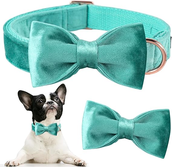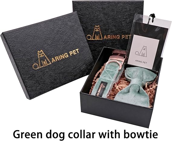 ARING PET Dog Collars with Bowtie-Velvet Dog Bow tie Collar, Adjustable Dark Green Dog Collar