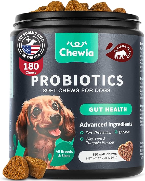 - NUTRIENT-RICH FORMULA: Our dog probiotic chews contain a powerful combination of wild yam, pumpkin powder, digestive enzymes to enhance nutrient absorption, bolster immunity & promote overall health
