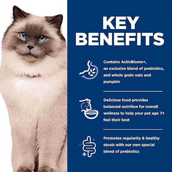 Every cat has an entire ecosystem living within them — the gut microbiome, full of billions of desirable and undesirable bacteria unique to your pet. With the right nutrients to help balance their microbiome, you can actually affect not only their digestive health, but their overall well-being during their golden years. That’s why we developed Science Diet Perfect digestive dry cat food with our ActivBiome Technology ingredient blend of prebiotics. It’s a breakthrough nutrition that supports each cat’s unique gut microbiome for healthy digestive and balanced nutrition that helps your cat age 7 feel their best.