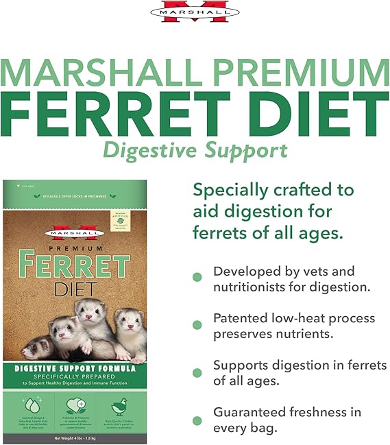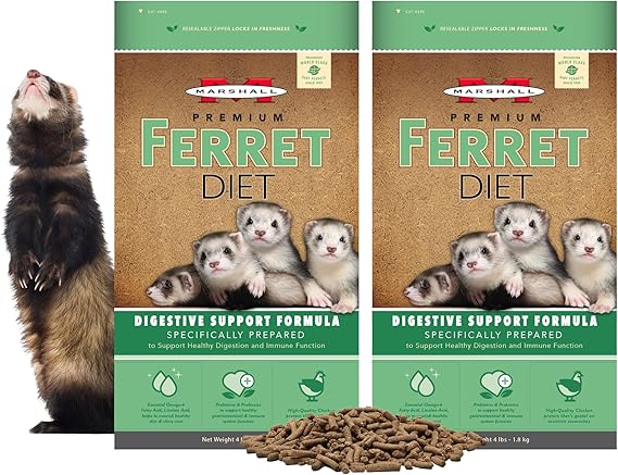 Marshall Premium Ferret Diet Digestive Support - 4 lbs Each - Protein-Rich Formula for Healthy Digestion, Balanced Nutrition, and Optimal Ferret Health (Pack of 2)
