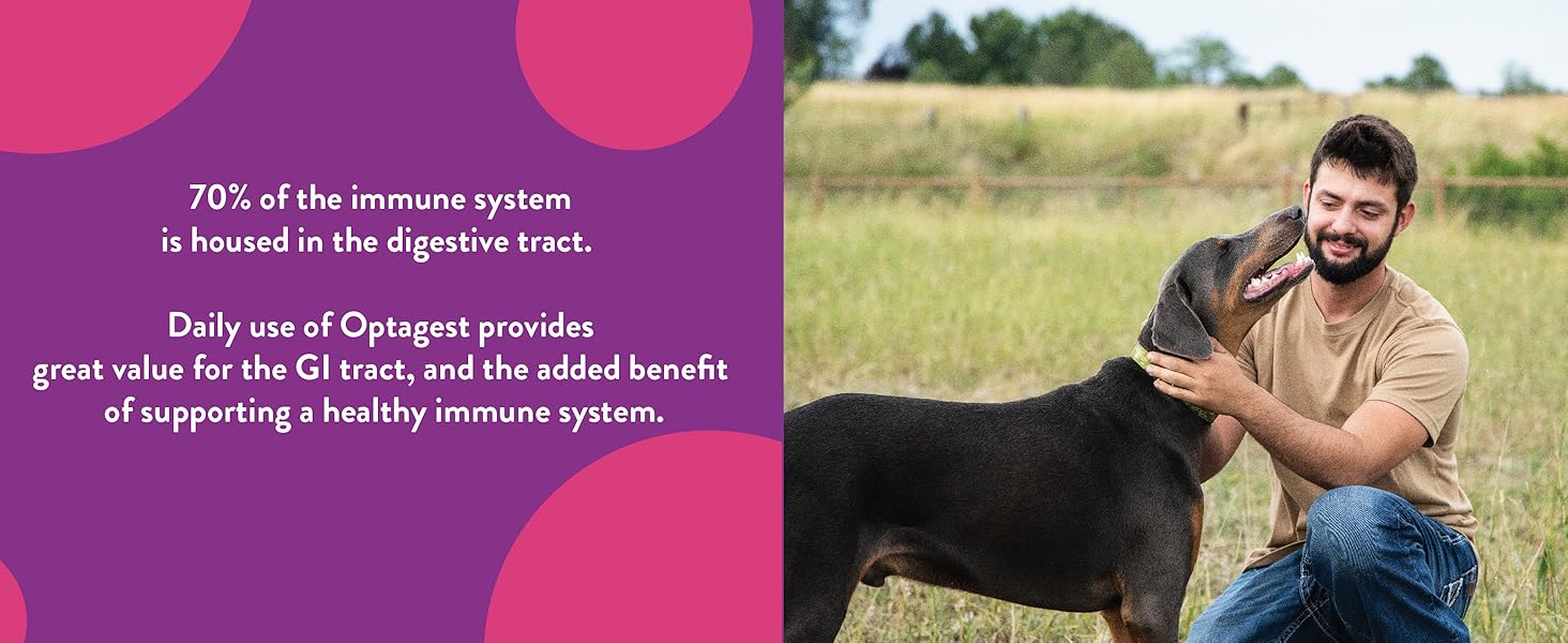 - OPTIMAL GI AND IMMUNE SUPPORT - A gentle and simple, yet effective, formula, Optagest does not include ingredients or fillers that would upset sensitive pet stomachs. Optagest's organic plant-based prebiotics and natural digestive enzymes work fast to promote a healthy intestinal balance. Prebiotics promote the “good bacteria naturally found in the intestinal tract of your pet. Enzymes break down nutrients in your pet's food for optimal nutrient absorption.