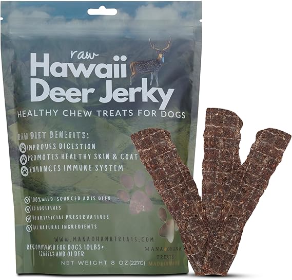 Deer Jerky Dog Treats | 100% Venison Meat Healthy Chew Treats for Dogs | All-Natural Grain-Free Training Rewards |Ideal for Medium & Large Dogs, 8oz