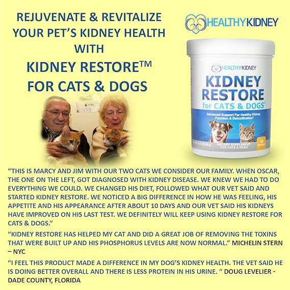 Hi, I’m Robert Galarowicz, a naturopath and pet nutritionist who has personally gone through all phases of kidney health. My life’s mission and passion are to help people, and cats and dogs to support normal kidney function and normal kidney health. There is hope for your pet to improve their health and support normal kidney function with our science-based kidney support supplements - Kidney Restore For Cats & Dogs and Kidney Shield For Cats & Dogs. We here at Healthy Kidney Inc. have been offering these two perfect nutritional supports for your feline and canine pets’ kidneys for several years. And now, we are thrilled to present them to you in one affordable bundle! Each kidney supplement is a powerhouse of natural kidney restoration & rejuvenating ingredients in their own right, but when taken together, you'll be supporting their normal appetite, energy, mood & all issues related to poor kidney health. What does this mean for your cat or dog? It means you’ll see them playing again, jumping again, eating and drinking again and enjoying life again! Our Kidney Restore for Cats & Dogs formula has over 7 types of probiotic microorganisms that support normal elimination of kidney toxins, prebiotics to strengthen the probiotics, sodium bicarbonate to help neutralize acid buildup, niacinamide to support normal phosphorus and cholesterol levels, vitamin C for natural antioxidants all in a scrumptious bacon-flavored sprinkle powder they’ll adore! Kidney Shield For Cats & Dogs is a 100% safe kidney health fish oil supplement optimized to provide the highest quality EPA/DHA Omega-3 fatty acids derived from five different coldwater fish! To Your Pet’s Kidney Health! Robert Galarowicz, N.D.