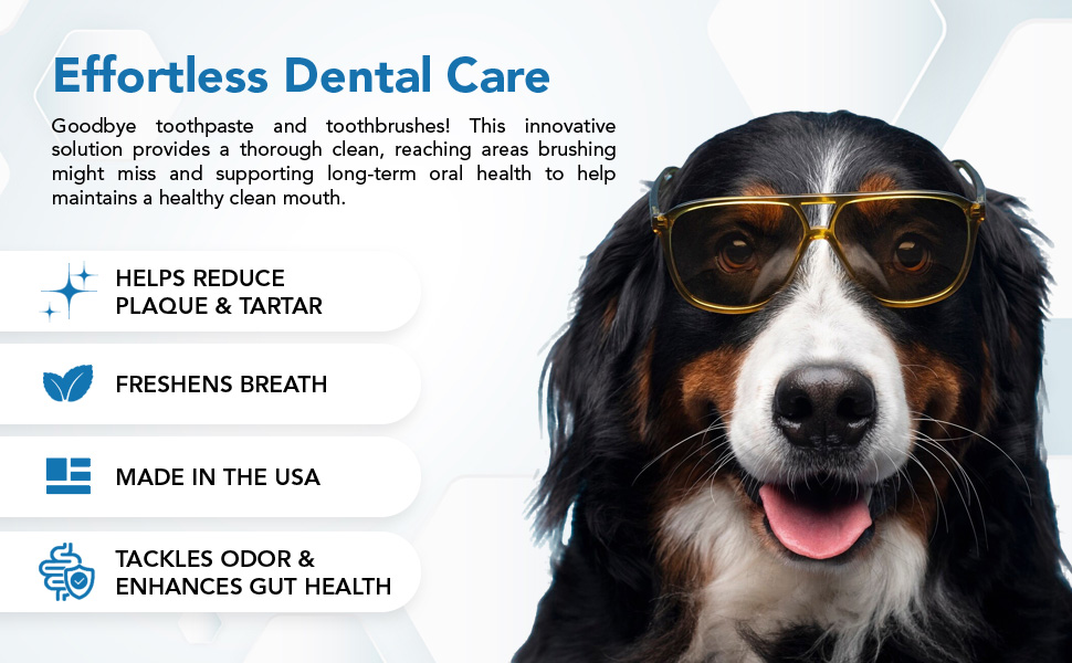 - Effortless Dog Dental Care: Goodbye toothpaste and toothbrushes! This innovative solution provides a thorough clean, reaching areas brushing might miss and supporting long-term oral health to help maintains a healthy clean mouth.