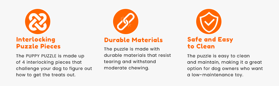 - ️ Easy Assembly: This 4-piece puppy puzzle is simple to assemble and customizable for endless fun. Perfect as dog entertainment toys for home alone, it features hidden treat pockets to enhance your dog’s sense of smell and paw skills, turning playtime into an exciting dog brain game.