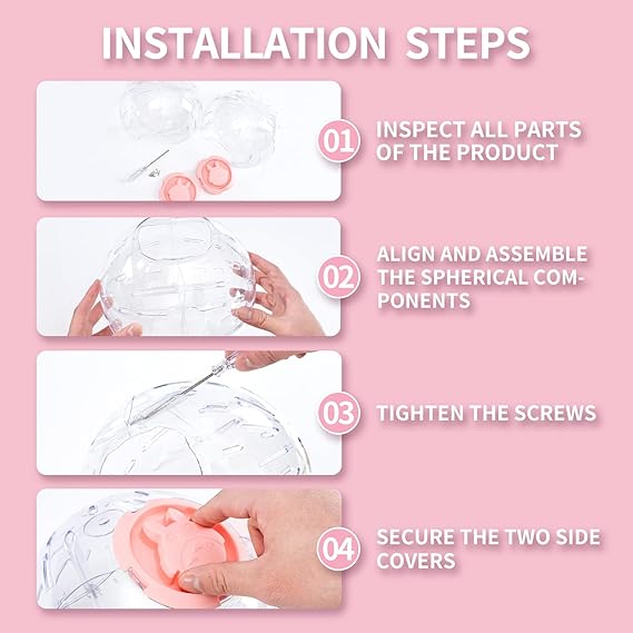 7.9 Inch Hamster Ball, Running Ball Toy, Transparent, Breathable, Promote Exercise Health, Reduce Stress, Easy to Clean, Hamster Accessory, for Syrian Dwarf Hamster, Gerbils, Mice, Small Pets, Pink