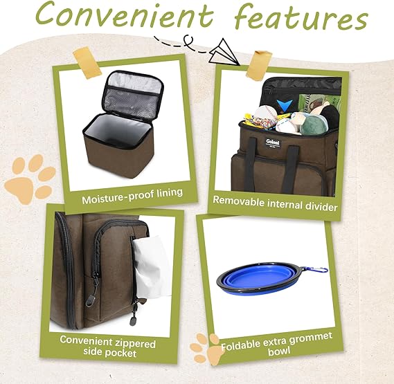 - Smart Storage & Organization - Features multiple pockets, an adjustable flap, and a spacious main compartment to hold food, treats, toys, leashes, and pet essentials—keeping everything neatly in place