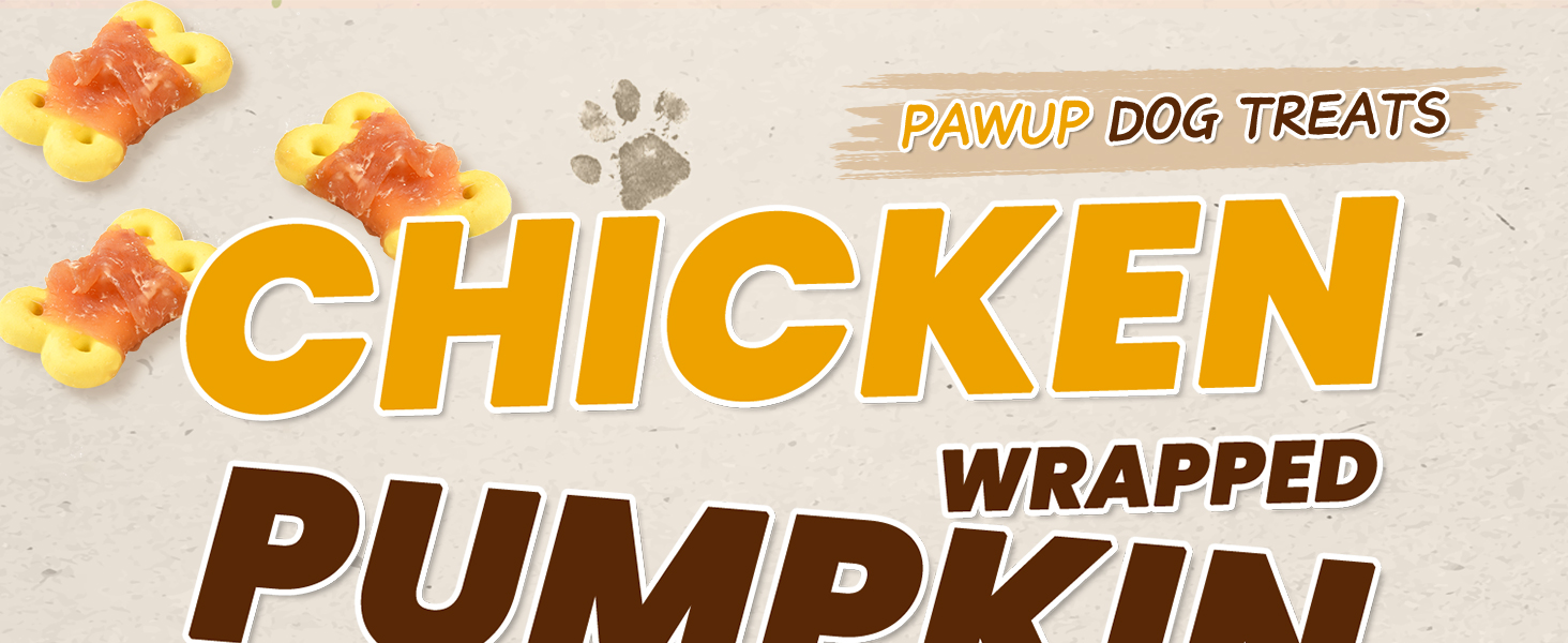 PAWUP Dog Treats Chicken Wrapped Pumpkin Biscuits, Rawhide and Gluten Free, w/Taurine Low Fat Chewy Training Treats,12.5 oz