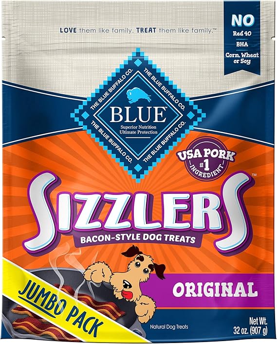 Blue Buffalo Sizzlers Bacon-Style Dog Treats with Real USA Pork, Original Flavor, 15-oz Bag
