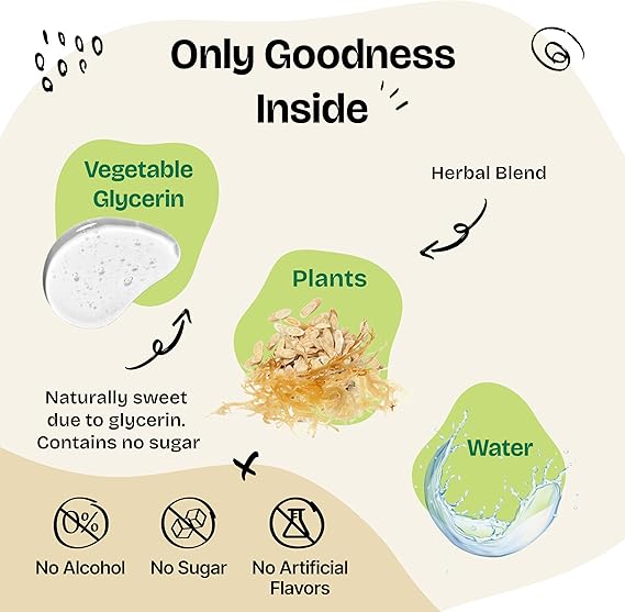 - Clean Formula: Our herbs & berries, purified water, and glycerin create a pure formula, free from sugar, alcohol, preservatives, artificial colors, or animal-derived ingredients.