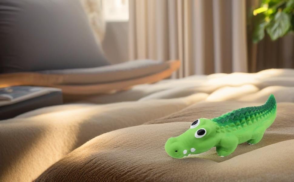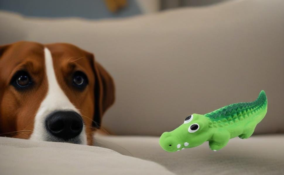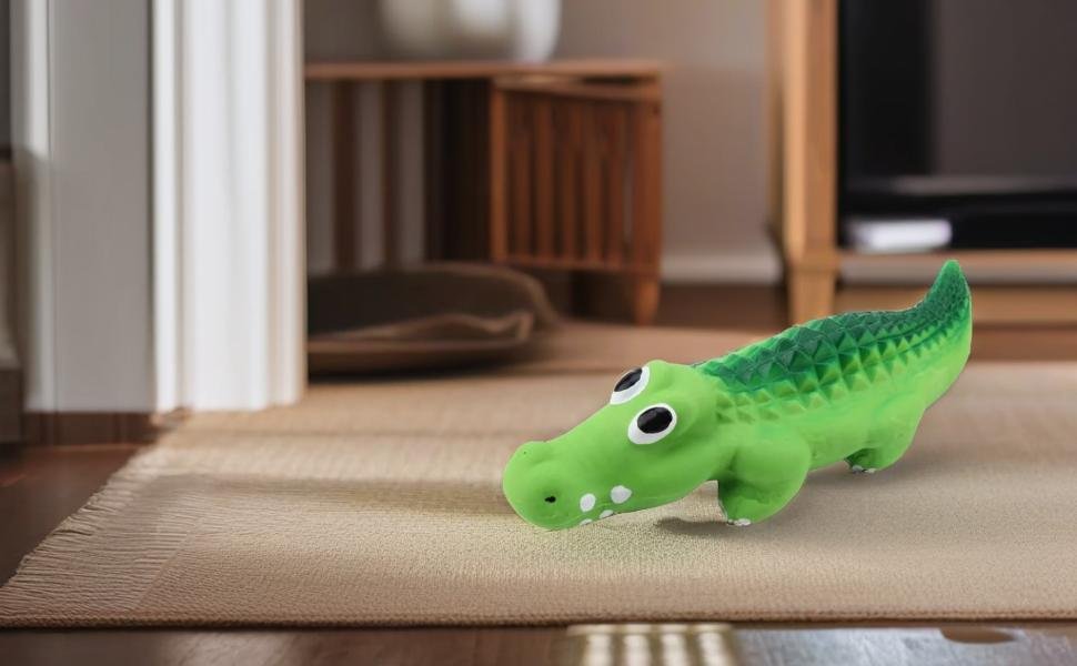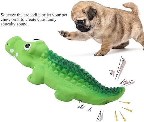 - SAFE LATEX MATERIAL -- Squeak Latex Puppy Toy Made of high quality latex material, environmentally-friendly, non-toxic and safe, Squeeze the crocodile or let your pet chew on it to create cute funny squeaky sound. With no hard plastic, sharp corners, the dog toy is super safe without any choking hazards for you and your pupy
