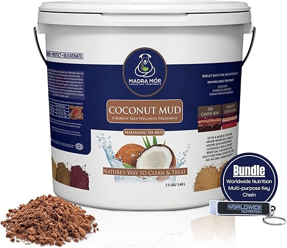 Worldwide Nutrition Bundle: Madra Mor Mobility Mud - Dog Essentials Mud Bath, Dog Grooming, Dry Skin for Dogs Treatment, Dog Coat Skin Care Products - 10oz Pouch & Multi-Purpose Key Chain