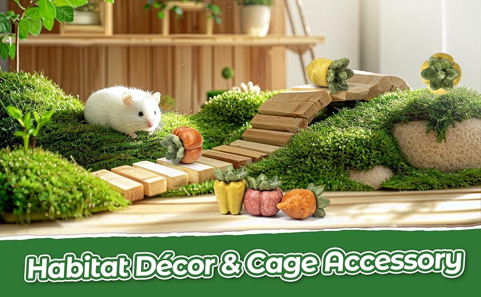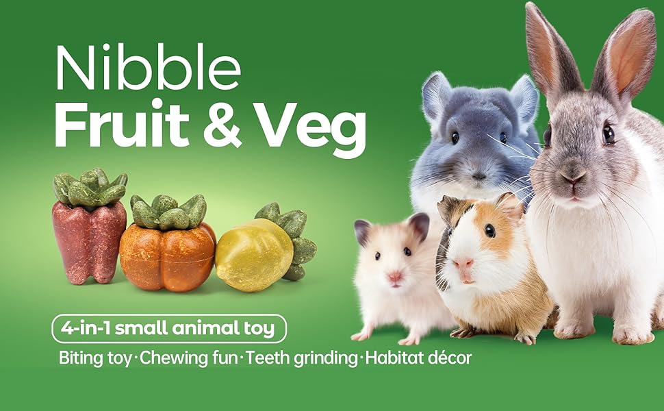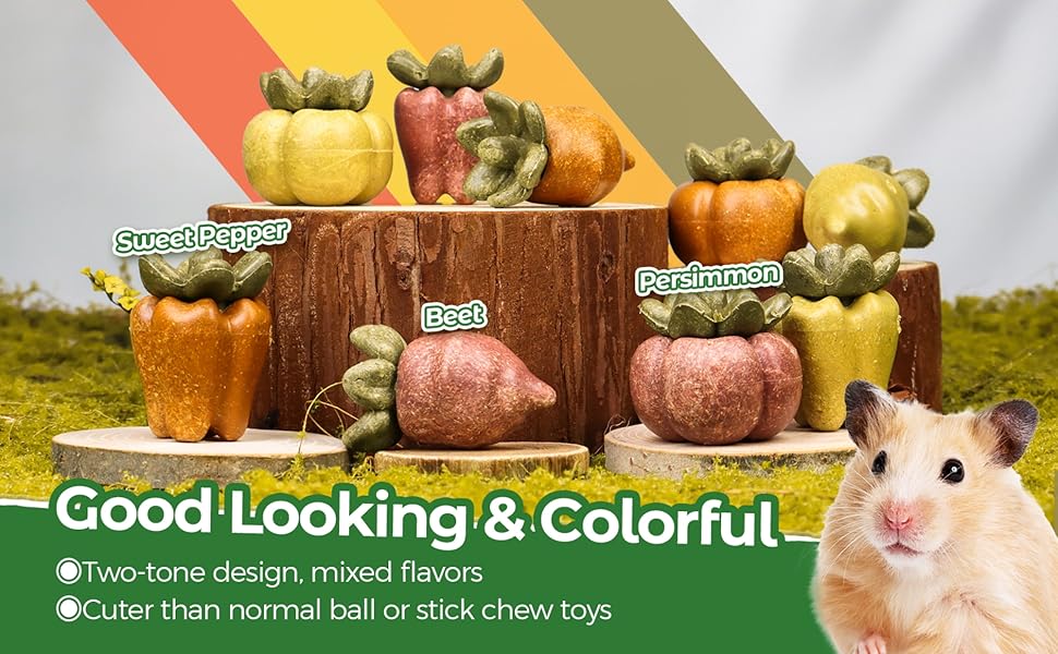 - [ Habitat Enrichment ]: Colorful beet, bell pepper and persimmon shaped chinchilla toys add a fun and decorative element to your pet's habitat